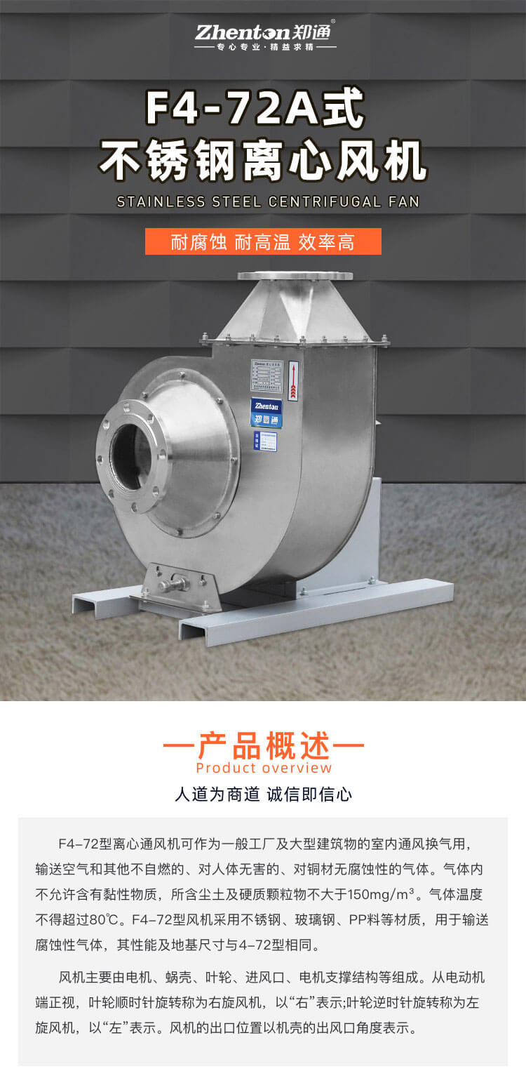 不得超过80°C。F4-72型风机采用不锈钢、玻璃钢、PP料等材质,用于输送