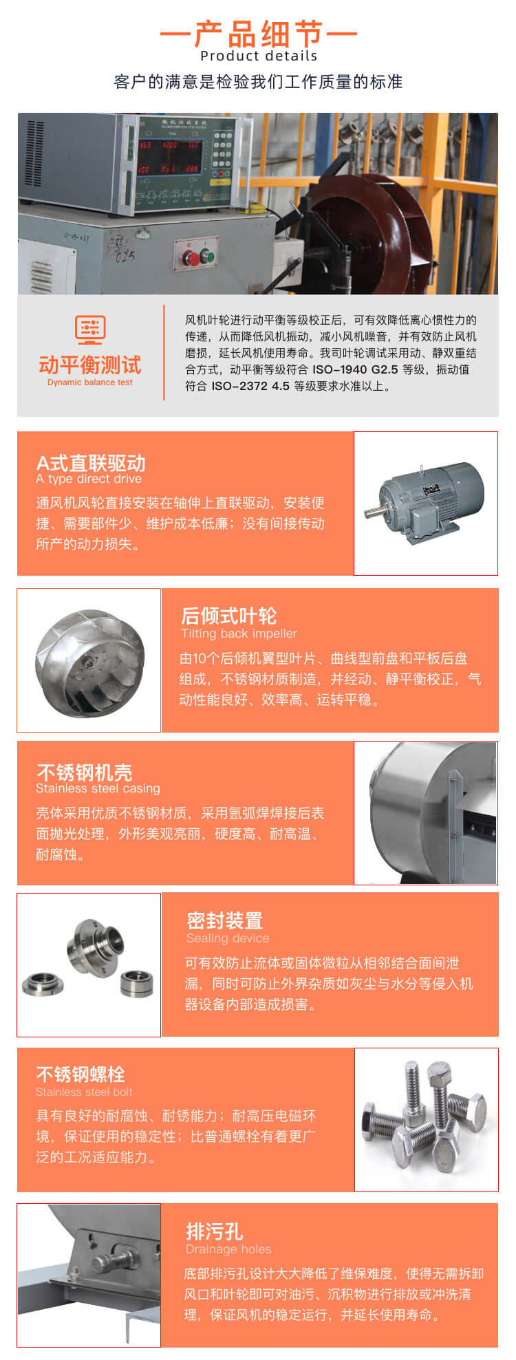风机主要由电机、蜗壳、叶轮、进风口、电机支撑结构等组成。从电动机 端正视,叶轮顺时针旋转称为右旋风机,以“ 右”表示;叶轮逆时针旋转称为左 旋风机,以“左”表示。风机的出口位置以机壳的出风口角度表示。
